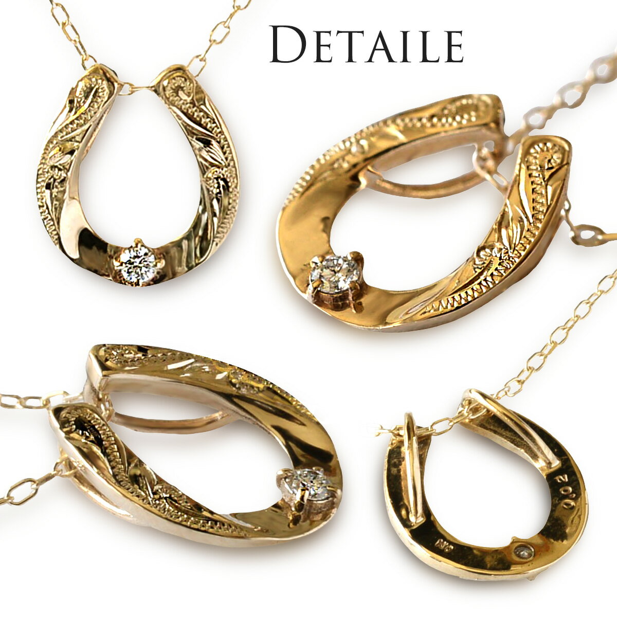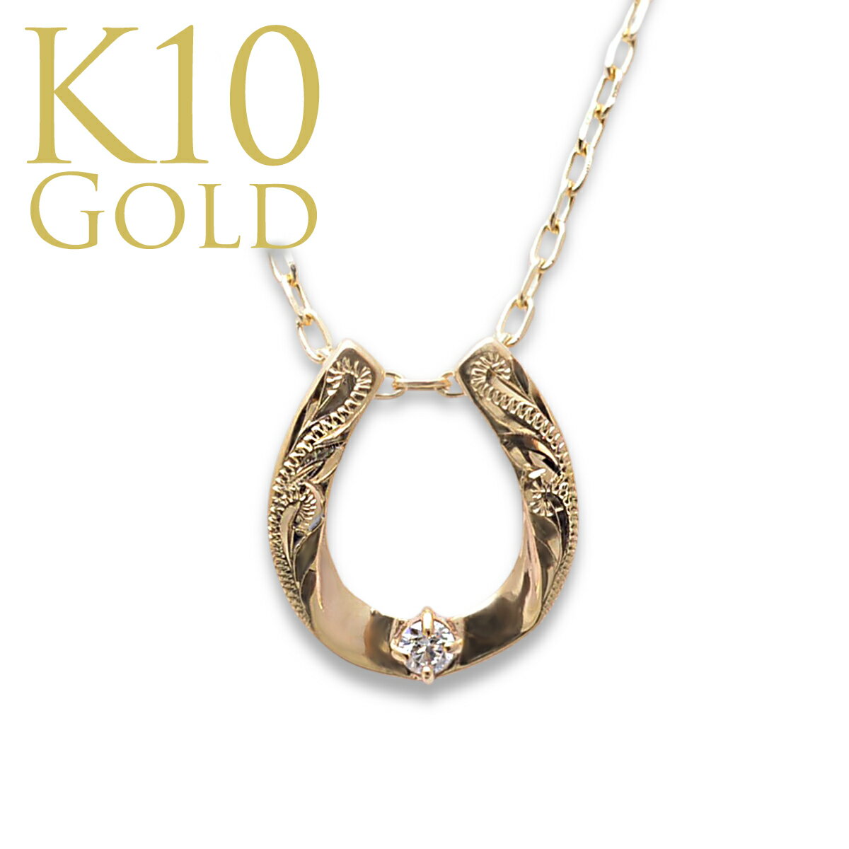 ハワイアンジュエリー ネックレス メンズ レディース K10 ゴールド 金10 馬蹄 ホースシュー ペンダント forメンズ ダイヤモンド0.02ct ペンダント チェーン付き