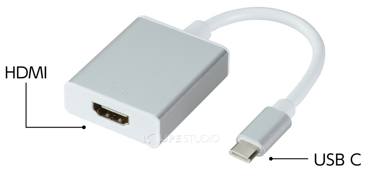 商品サイズ:37×46×15mm、ケーブル130mm※「Displayport Alternate Mode(ディスプレイポートオルタネートモード)」に準拠しているUSB Type-Cポートに接続し、HDMIの映像信号に変換するアダプターケーブルです。