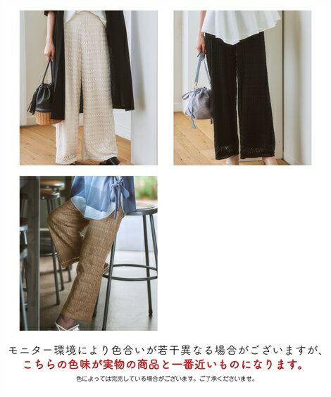 原産国 中国製 メーカー品番 ZZY4321B6540 コメント ビンテージライクなレースが映えるワイドパンツ。