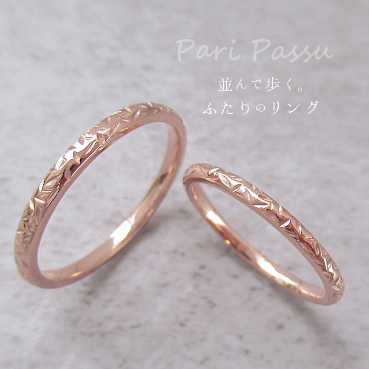 結婚指輪 マリッジリング ペアリング カップル 2個セット 刻印無料 偶数号 シルバー リーフ模様 表面デザイン ローズゴールド 細身 華奢 結婚記念日 指輪 プロポーズ 2本セット価格