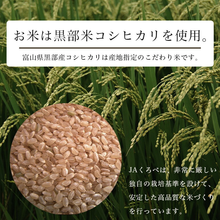 保存方法 常温 原材料 玄米(黒部コシヒカリ) 商品説明 面倒な洗米、浸漬が必要なく、すぐ使用できます。