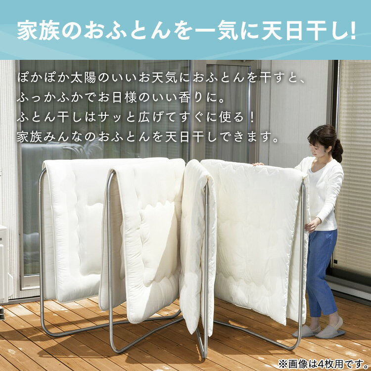 広げて干せる!布団を掛けやすい扇型タイプです!! 使用しない時はコンパクトに収納できます。